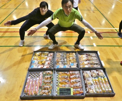 運動後にはお腹がペコペコになるので、参加者全員にパンと飲み物を参加賞として配布しました。