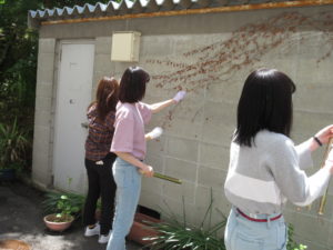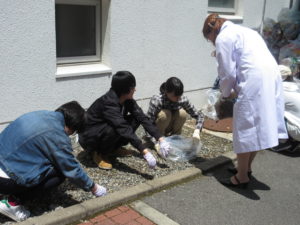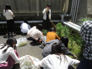 生命栄養科学科は、普段講義で使う建物周辺の草取り、ゴミ拾いを行いました。