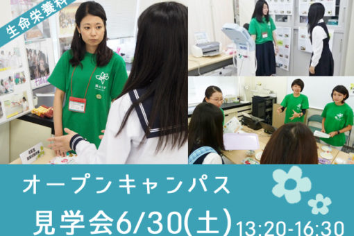 『見る』100食の調理を行う大量調理施設や、生命栄養科学科の学生が作った栄養教育媒体などを見る、見学ツアーがあります。