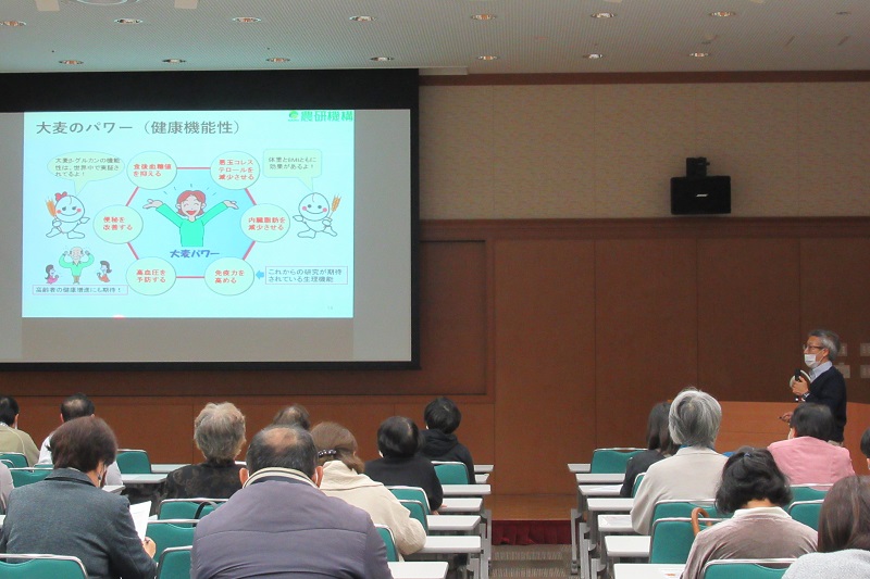 後半の講演テーマは、「大麦の機能性はすごい!」講師は生命工学部の客員教授である池田達哉教授です。