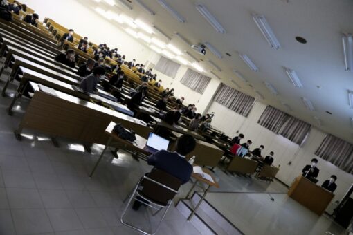 生物工学科では毎年、全学生が一堂に会して卒業研究発表会を行います。 卒論発表会は午前と午後と長時間にわたりますので、今年は4年生と大学院生、および教員だけが2432教室に集合して、あとの学生さんはウェブ配信で視聴するという形をとりました。 勿論初めての試みです。 卒論発表会の様子は既に学長室ブログで紹介されていますので、学部ブログではちょっと視点を変えてご紹介します。