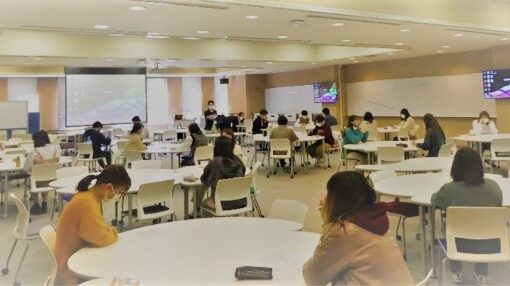 4年次生と一緒に回り、勉強やサークル活動、アルバイトなどについて話しながら探索していると、気づけば最終ポイント場所といった様子でした。