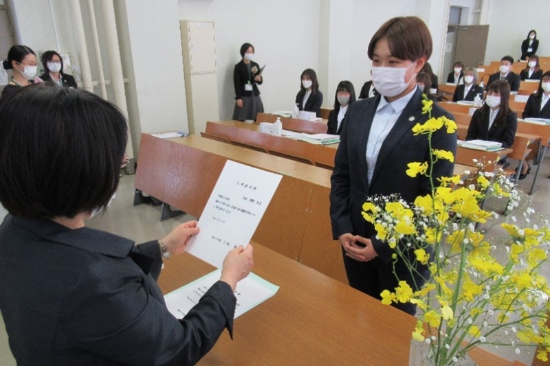 入学式後、石井学科長より入学許可証が一人一人に手渡されました。