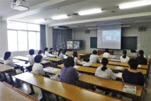 講義では、コロナ感染対策のためにも手洗いの大切さ、日常的にどのような場面で手洗いが必要か、医療や食品工場などでの衛生管理としての手洗いとはどういう意味を持つのか、などといったことを菊田教授が解説されました。