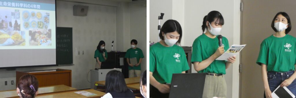 さらに学生目線でのキャンパスライフについて、午前は4年次生の2名、午後は3年次生の3名が自身の体験談も交えて紹介をしました。
