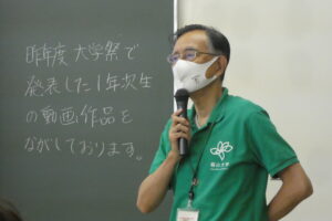 続いて当学科の菊田教授から、コロナ禍のため、毎年好評な食品を取り扱う模擬実験・実習にも制限がある中で、短時間の中でもできる限り楽しく、興味を持てるようなプログラムを用意しましたので、高校生の皆さんに体験していってもらえたら嬉しく思います、と挨拶がありました。