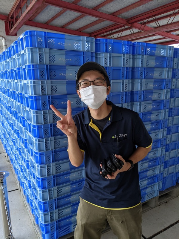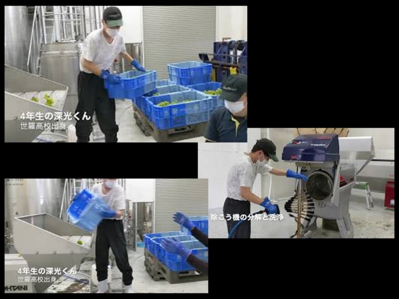 ワイン醸造を学科の教育に取り入れている生物工学科としては嬉しい出来事なのですが、「果たして大丈夫か?」という心配はつきません。 そこで橋本さんにどんな様子か聞いたところ、「とにかく人手が足りなくて、なかなか家に帰れない。」とのこと。 「そりゃいけん、何とかせにゃいけまぁ」ということで周りを見回してみると、ちょうど研究室の4年生に広島県立世羅高等学校出身の深光純弥くんがいたので「手伝ってみる?」と聞いたところ、「ぜひやりたいです。」とのこと。 とんとん拍子にお手伝いが決まりました。