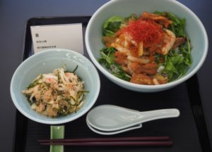 「セセリ丼」「切り昆布のサラダ」