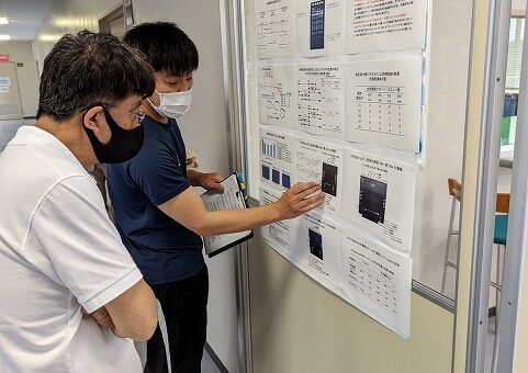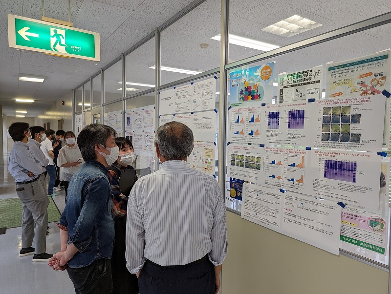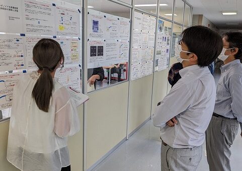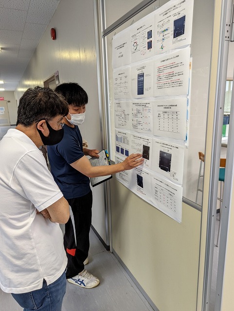 2022年5月26日(木)の午後4時15分から1時間あまり、28号館玄関で令和4年度の大学院中間発表会を開催しました。