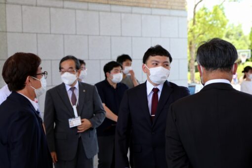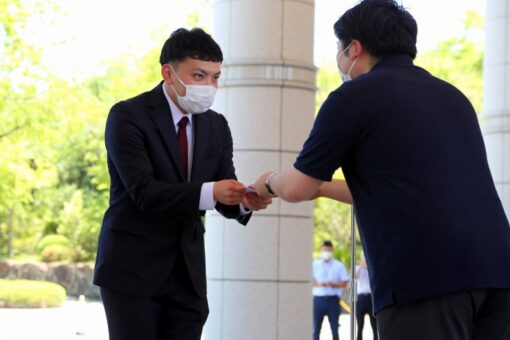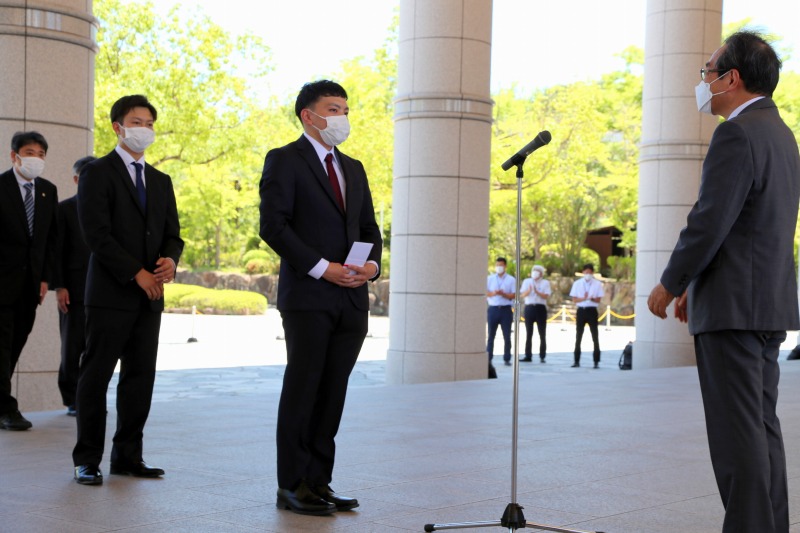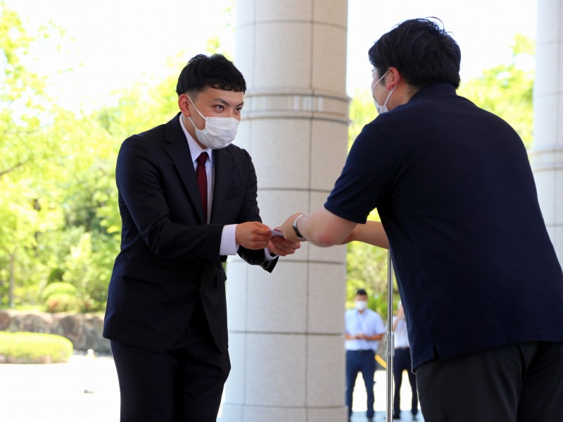 生物工学科3年生の田中智教(とものり、山口県鴻城高等学校)君が、7月3日(日)に日本武道館で開催される『第70回全日本学生剣道選手権大会2022』男子個人の部に出場するにあたり、6月30日(木)の12時半から、1号館ピロティーにて壮行会が開催されました。