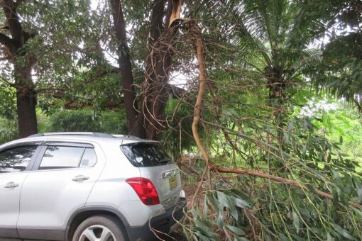 朝、Laodiにやってきたら、工場前の大木の木の枝が折れていました。 昨日からの雨(半端じゃない)の重さで、こうなったのです。