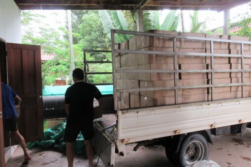 LADODIの新しいビンが届きました。 全部で1万本。 このトラックで4往復です。