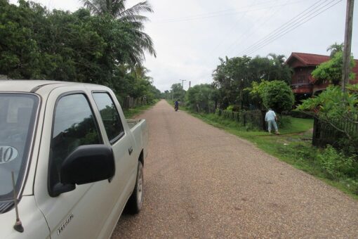 朝です。 井上氏のナーソンでの家の前の道です。 細い未舗装道路ですが、この道はまだいいほうです。
