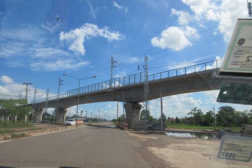 ビエンチャンに帰る途中で、中国につながる高速鉄道の高架の下を通りました。 画面の左の方向にラオス駅があります。 周りはかなりの田舎らしいですが、すでに駅周辺は中国資本が買い占めているそうです。 明日はここを通ってルアンパバーンに行きます。
