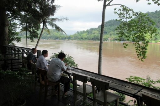 第8日目はまずスファヌボン大学訪問です。 朝食の後、昨日通りかかったメコン沿いのカフェでコーヒーを飲みながら、簡単な作戦会議です。 といってもアウトラインだけの確認です。