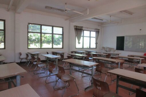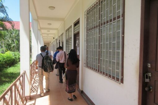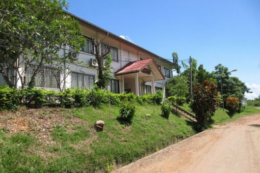 ルアンパバーンの街から車で走ること30分。 スファヌボン大学に到着しました。 そこそこきれいな校内ですが、外周のフェンスは草ぼうぼうでした(田舎の大学)。