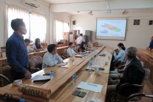 続いて井上氏とシハッタ氏が簡単にLAODIの説明をしました。 そもそもなぜこの大学を訪ねるようになったかというと、昨年の秋にこの学科の4年生たちが20人近くLAODIを訪ねてきて、プラムからのワインの作り方やナンプラー(魚醤)の作り方を教えてほしいと、井上さんに指導を仰いだことがあったのです。 なぜLAODIかというと、そこに「福山大学ラオス醸造研究所」の看板が上がっているからです。 その学生たちは陸路7~8時間かけてわざわざ訪ねて来たそうで、その話を聞いた私は「これはまず一度訪ねてみなければ・・」と思ったわけなんです。