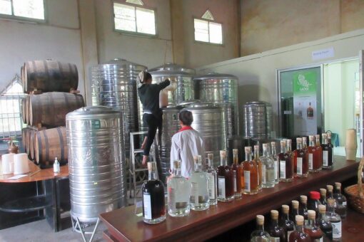 先日行ったラオラオの村でも使っていましたが、このカブト式蒸留器はアジア発祥の歴史ある蒸留器だそうです。 今ではこれを使ってホワイトのプレミアム・ラムづくりに挑戦しています。