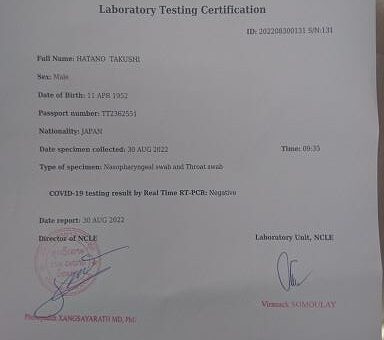 シハッタさんが持ってきてくれた、私のPCR陰性証明書です。