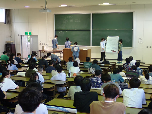 海洋生物科学科では、毎年大学祭での学科展示の一部を1年生が企画・実行しており、その一連の活動は初年次教育科目「教養ゼミ」の一環として行われています。今年の取り組みの様子を山岸が紹介します。