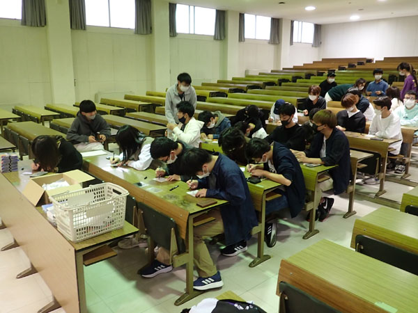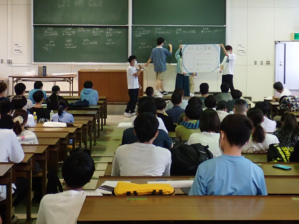 前期の教養ゼミの時間に、まず1年生が16の小グループに分かれて、大学祭の学科企画の案づくりを行いました。