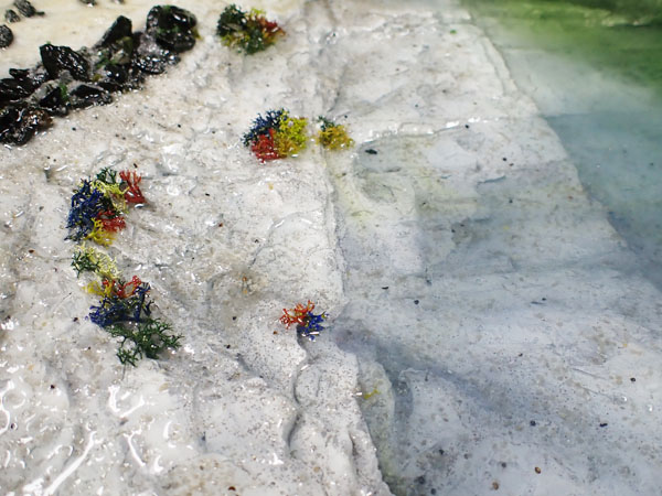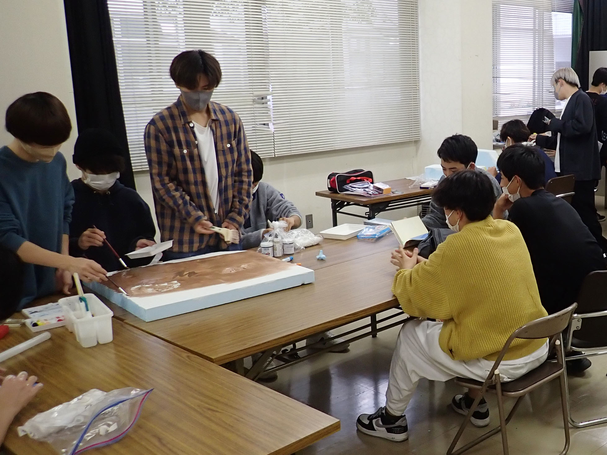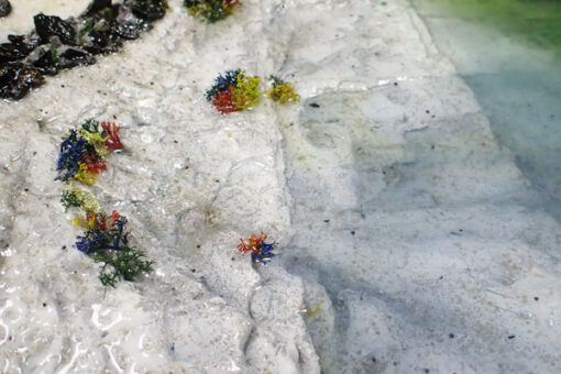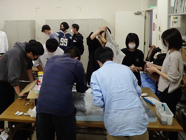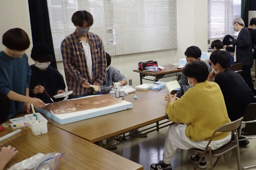 海洋ジオラマでは、熱帯、深海、干潟の3つの海をテーマに、海の様子や生物を模型で表現します。慣れない作業が多く作成にはとても時間がかかりますが、グループで協力して作業を進めています。