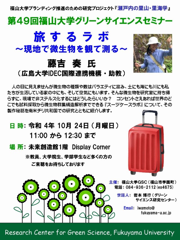福山大学グリーンサイエンス研究センターでは、三蔵祭関連行事として2つのセミナーを実施しますのでお知らせします。