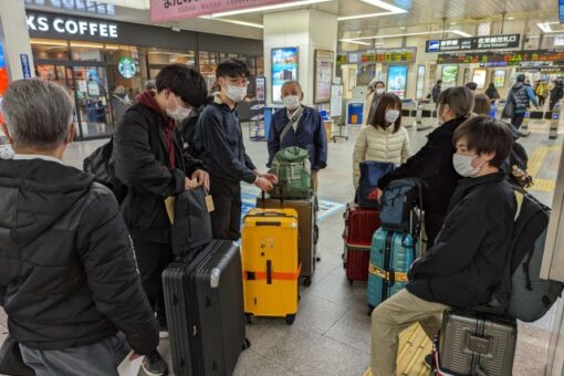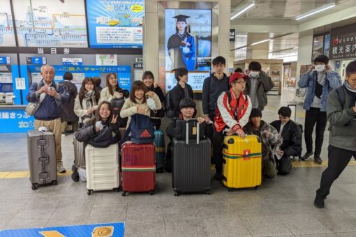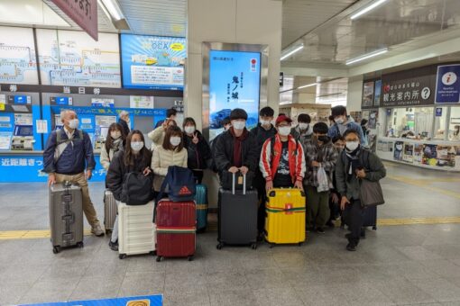 2022年12月2日(金)、生物工学科のラオス海外研修2022がスタートしました。 残念ながら1名の学生さんが体調不良のためキャンセルしましたが、あとの学生13名と引率教員2名は、ラオスに向けてJR福山駅を元気に旅立っていきました。 まずJRで関西空港に向かい、明日(12月3日)ラオスに向けて飛び立ちます。