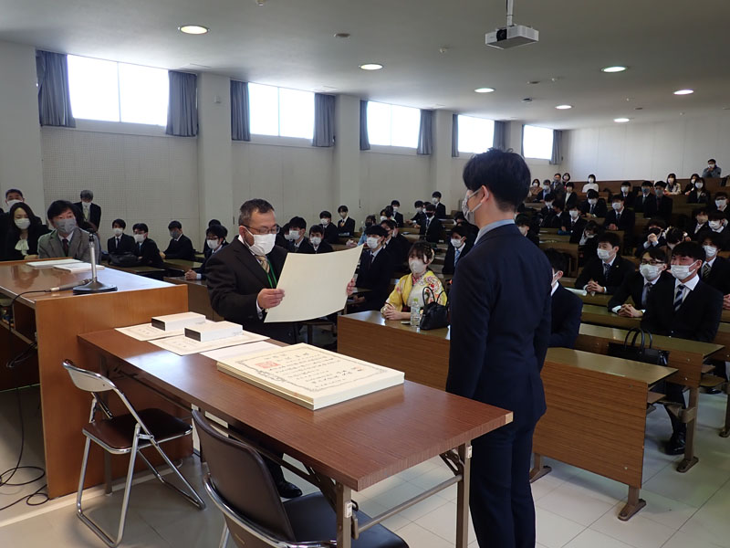 この後、4先生一人一人に学位記を授与しました。皆さん、おめでとうございます!!