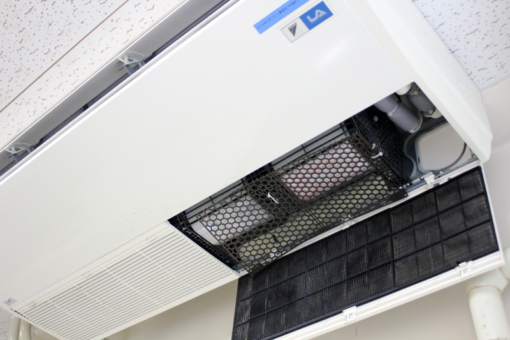 生物工学科の醸造試験室では家庭用エアコンより少し高性能な中温エアコンを設置して、15℃前後に保っています。ワインの保存に最適な温度帯です。気になるのはその消費電力です。今回は地元の認定販売店さんから空調機用静電除去シートCONTINEWM®導入の提案を受け、実際の効果を検証してみました。