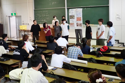 前期の教養ゼミでは、1年生の各グループが企画案をプレゼン発表して決めました。