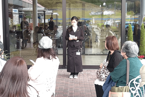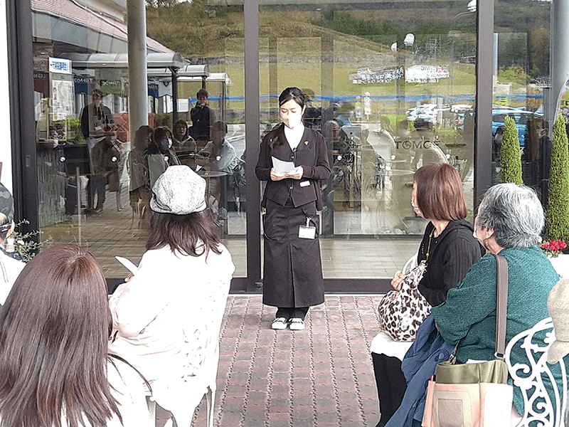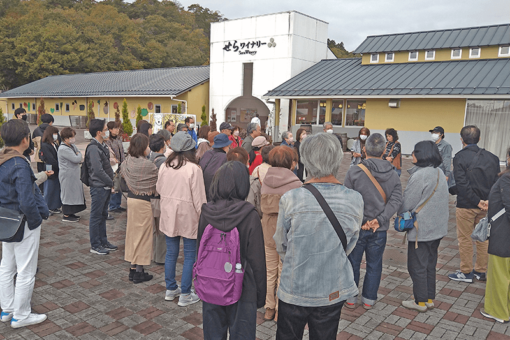 道中では山本覚教授から福山大学でワイン造りを始めたきっかけなどが語られたほか、吉﨑隆之福山大学ワイン醸造所長からはワインに関するミニ講義が行われ、1日ワインづくしの会となりました。以下、各ワイナリーでの模様をお伝えします。