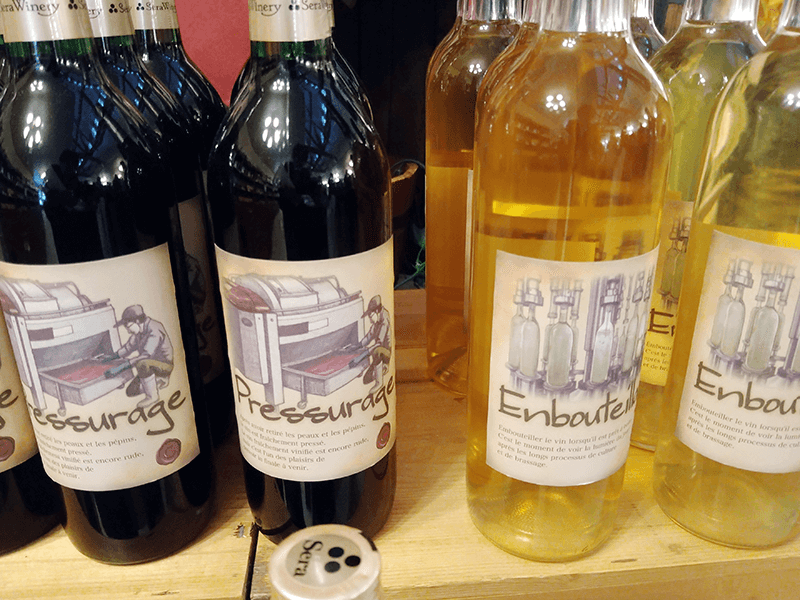 ショップに入ると初めて見るプレシュラージュとアンブテイヤージュというワインが並んでいました。全12種類のコレクターズワインだそうで、よく見るとラベルに橋本醸造責任者が描かれているようです。こういうのつい集めたくなる私ですが、一部はすでに完売だそうで収集に走らずにすみました(笑)