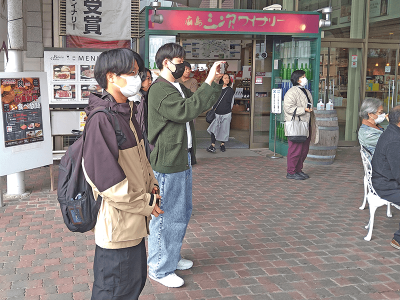 2軒目は北部の三次市にある広島三次ワイナリーです。近年国内外のワインコンクールで数々の賞をもらい、日本で注目のワイナリーの1つです。こちらの太田醸造長には以前生物工学科で講義をしてもらったことがあります。ここではソムリエ資格を持つ職員の方から、高地で穫れる三次ブドウの特徴や仕込みのこだわりなどを語っていただきました。
