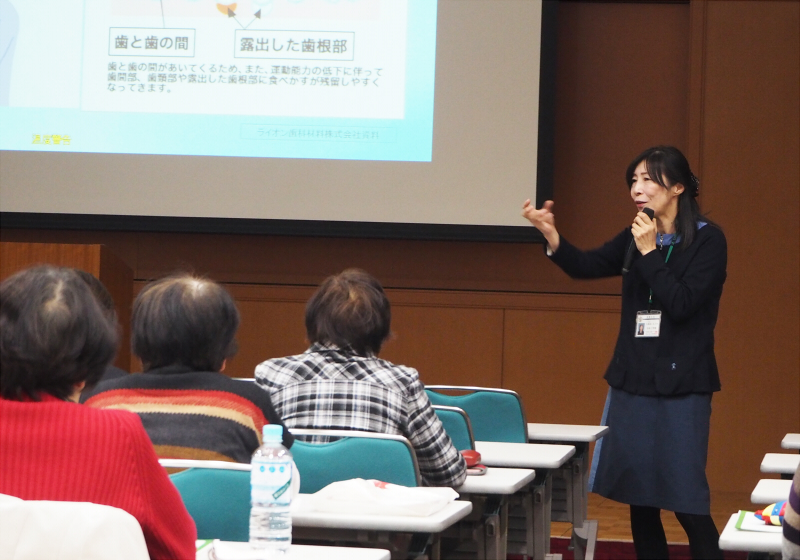 唾液は消化酵素だけではなく、歯の保護や抗菌作用などがある…等、口と健康について様々な観点からお話がありました。