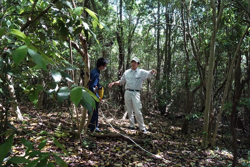 学長から一言:生物科学科の学生諸君は、経験豊富な新任の石塚講師の指導の下、野外での環境探索や生物観察のイロハを着実に学んで行っているようで、嬉しい限りです。足下などからダニや害虫が入り込まないように、暑くてもしっかりと防御できる服装や履き物を身に付けて大いに楽しんで下さい。
