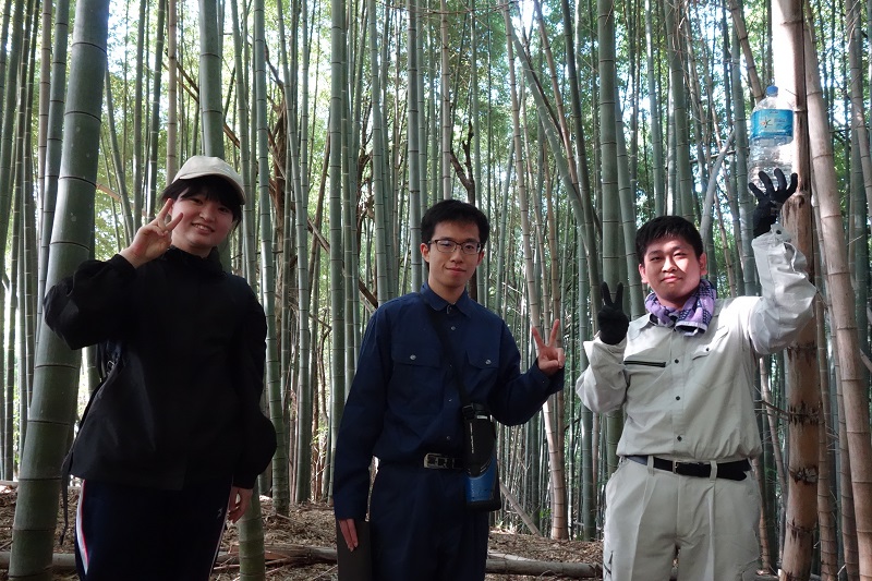 4人が山から帰ってきたときに、ちょうど学内で出会うことができました。今回の“下準備”には4時間もかかったそうです。大変な作業でしたね。この山には、いったいどんな動物たちが暮らしているのでしょう。新しい発見があると良いですね。楽しみながら、気を付けながら、頑張ってほしいです。次は私も同行したい!