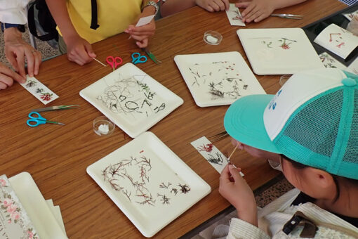 トークの合間には「海藻押し葉しおり」づくりも行いました。珍しい海藻のしおりを作って持ち帰ることができるとあって、子供さんから大人の方まで喜んでいただけました。山岸と大学職員の高橋さん2人で大忙し。
