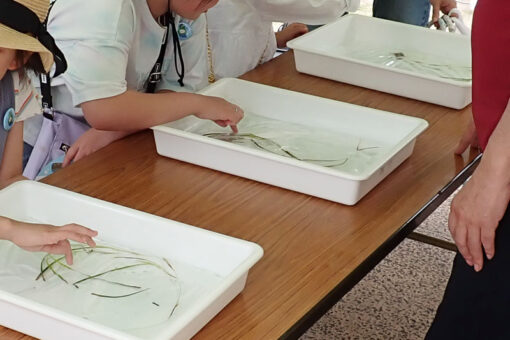 アマモを学ぶミニトークでは、「アマモってどんな植物?」「なぜアマモを増やすの?」という内容で、実物のアマモの観察や、アマモ場にすむ生き物の動画などを交えて、海の森についてわかりやすく学べるようにしました。