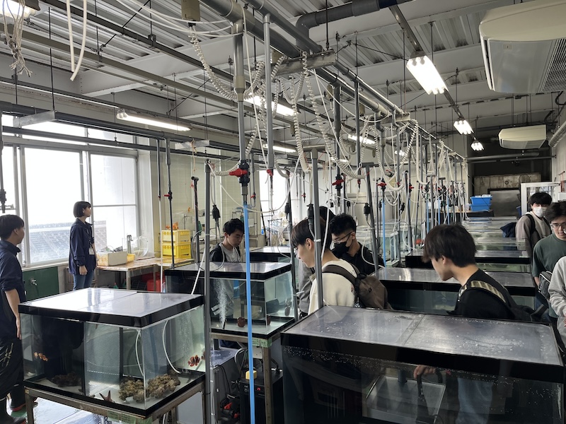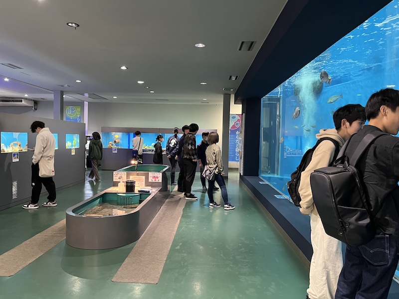 去る4月27日(土)に、新入生オリエンテーションの一環で因島キャンパスツアーを行いました。 水族館の様子です。今春改修工事が行われた大水槽をはじめ、とてもきれいですね。