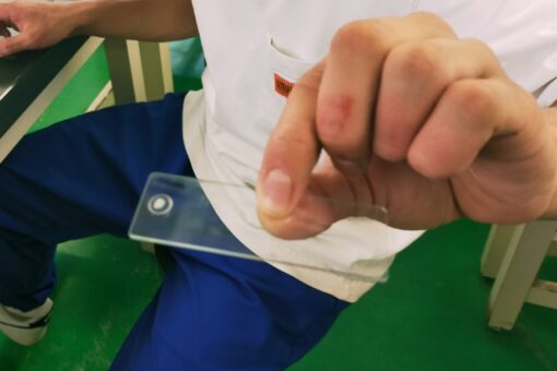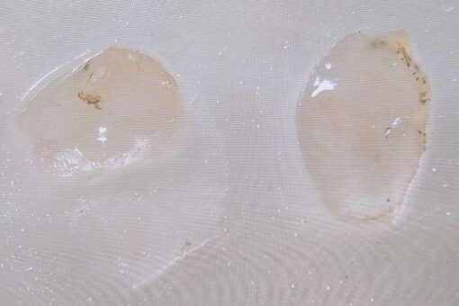 耳石をスライドガラスに載せ、レジンで固定します。