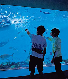 観賞魚の飼育・繁殖、展示手法などを学び、海洋生物の飼育と展示に関する知識と技術を身につけます。