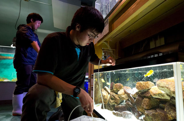また、内海生物資源研究所には、150トンの大水槽をはじめ約20の展示水槽およびバックヤードを有する附属水族館や、大規模な魚介類の飼育設備などが整備されており、学生実験や卒業研究に活用されています。