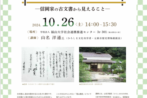 【人間文化学科】備後圏域経済・文化研究センター文化部門主催 シンポジウム「「福山義倉」の文化的ネットワークとその継承―菅茶山と井伏鱒二を軸に―」 のお知らせ