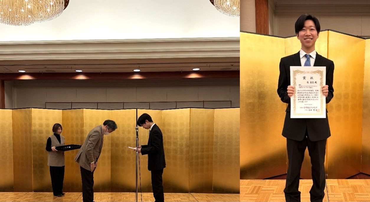 本大会で発表した電気電子工学科4年生の原勇真さんが、電子情報通信学会から「2024年度電子情報通信学会中国支部 連合大会奨励賞」を、電気学会から「電気学会中国支部奨励賞」を受賞しました。3月7日(金)にリーガロイヤルホテル広島で開催された表彰式に出席し、賞状等をいただきましたので、学長にその報告を行いました。