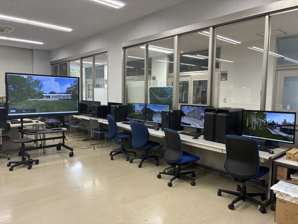 CG体験では有名な建築作品の内部をウォークスルーすることができ、小学生や中学生がゲームで遊ぶ感覚で上手に画面操作をしているのが印象的でした。