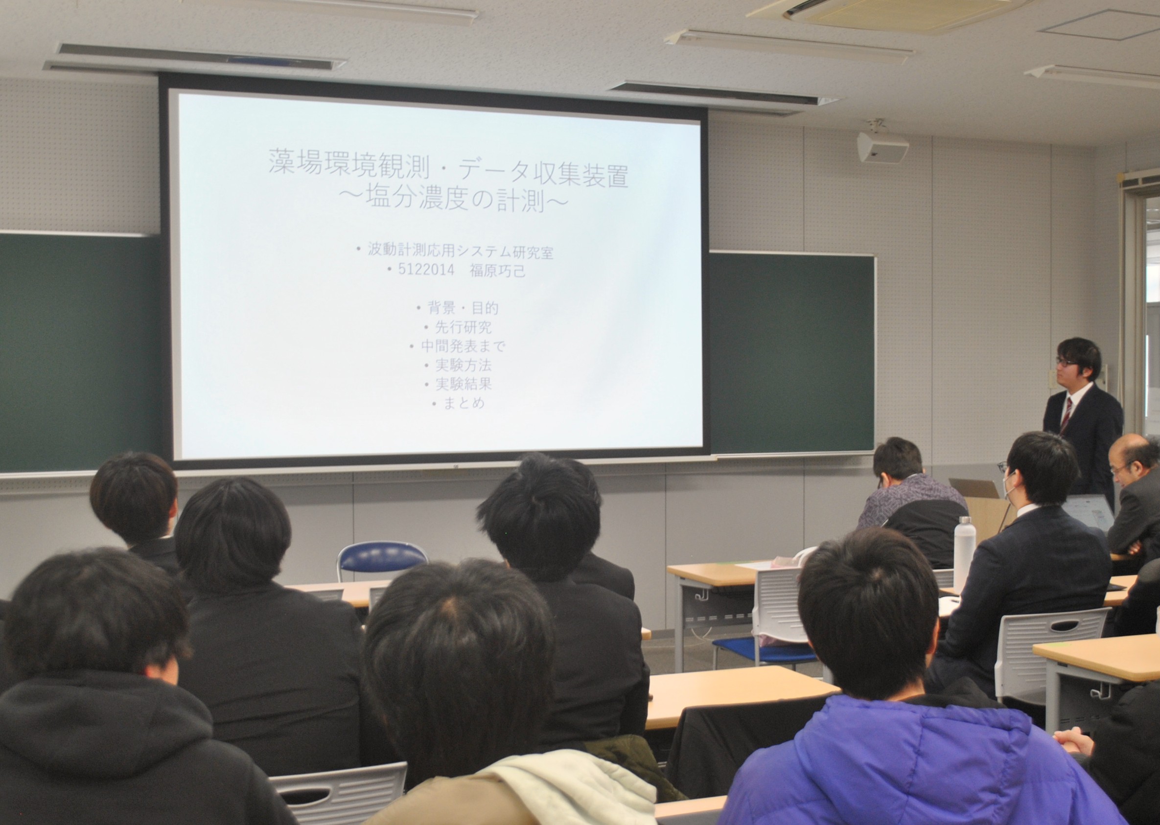 学長から一言:工学部電気電子工学科の卒業研究発表はずいぶん充実していたようです。学科の教員の指導の下、4年生の皆さんが日々一生懸命に取り組んだ研究は、いずれも電気電子工学の分野でいままでの研究水準を超えるものなのでしょう。とくに本学が推進する福大ブランドの総合研究「瀬戸内の里山・里海学」に関わり、海の環境改善や調査に結びつく内容に加え、半導体関連のテーマが見られます。研究の完成を心から喜びたいと思います。