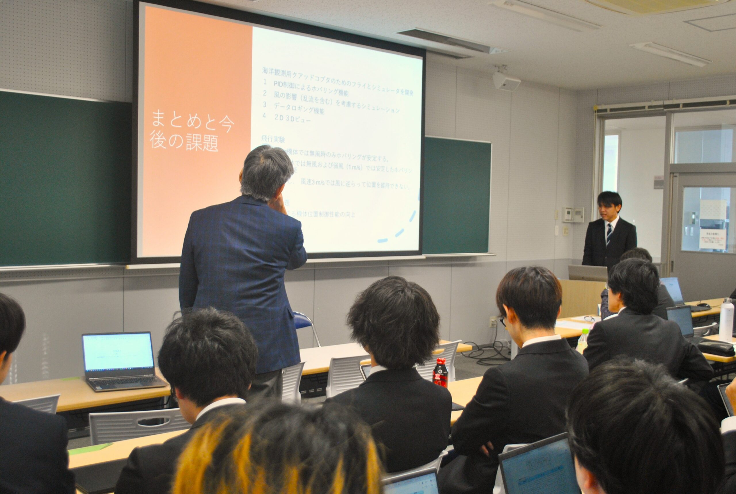 発表時間は1件あたり10分(発表7分、質疑応答3分)で行われました 。発表後の質疑応答は評価の重要な対象となり、教員から鋭い質問が発せられます。発表者の皆さんが、緊張感の中で懸命に応答する姿が非常に印象的でした。