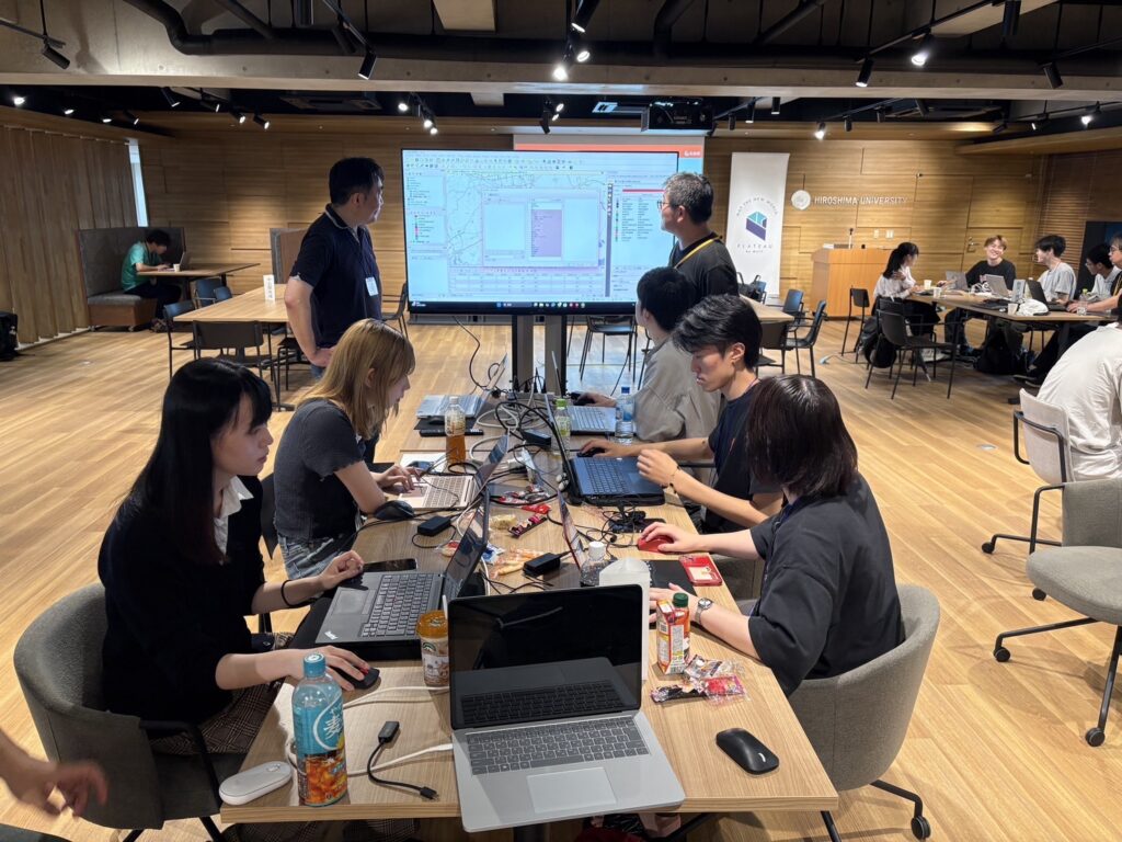 建築学科都市計画学研究室(大畑ゼミ)所属の学生の皆さんは、ゼミ配属が決まって最初に「DoboX × PLATEAU Hack Challenge2025 in 広島」に参加しました。この催しは2025年9月13日・14日の2日間実施され、プログラミングやデータ分析に詳しいメンターによるサポートを受けながら、データを活用して地域課題の解決アイデアを生み出す取り組みです。