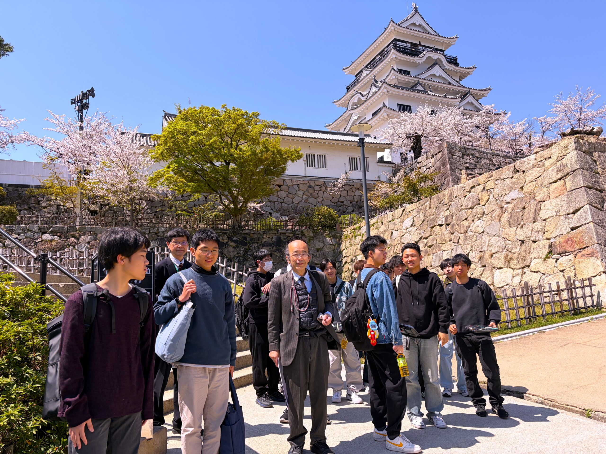 その後、一行は福山城へ移動し、桜吹雪の舞う中で昼食をとりました。穏やかな春の陽気のもと、新入生同士や教員との交流も深まり、和やかなひとときとなりました。